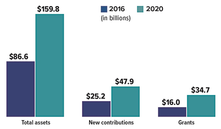 Contributions to DAFs accounted for about 10.1% of total U.S. charitable giving in 2020.